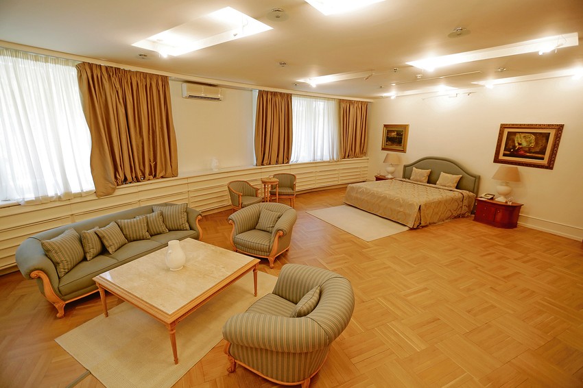 Na prvom spratu, prvobitno napravljenom kao Titov intimni prostor sa spavaćom sobom, smešten je niz kabineta opremljenih običnim kancelarijskim nameštajem i spavaća soba žene Marka Miloševića, Milice, koja je tu boravila sa detetom. Spavaća soba Josipa Broza iz koje pravo do Lovačke kuće vode dve pasarele, specijalno napravljene za Titovo olakšano kretanje u kolicima, služila je tada kao frizerski salon i vešernica, otkrio je Alavanja.