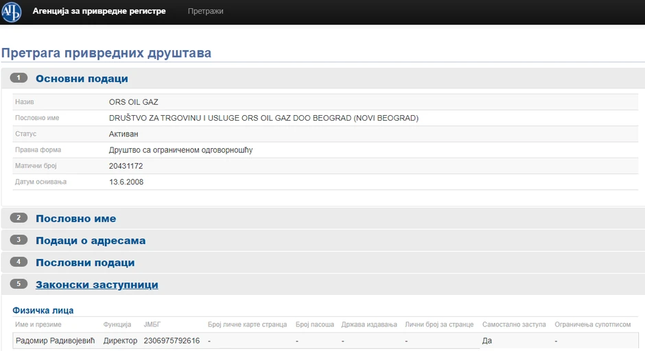 Jedan od učesnika u relaizaciji, Radivojevićev "Ors Oil Gaz d.o.o" u Agenciji za privredne registre upisan kao društvo sa oraničenom odgovornošću čija je delatnost proizvodnja derivata nafte.