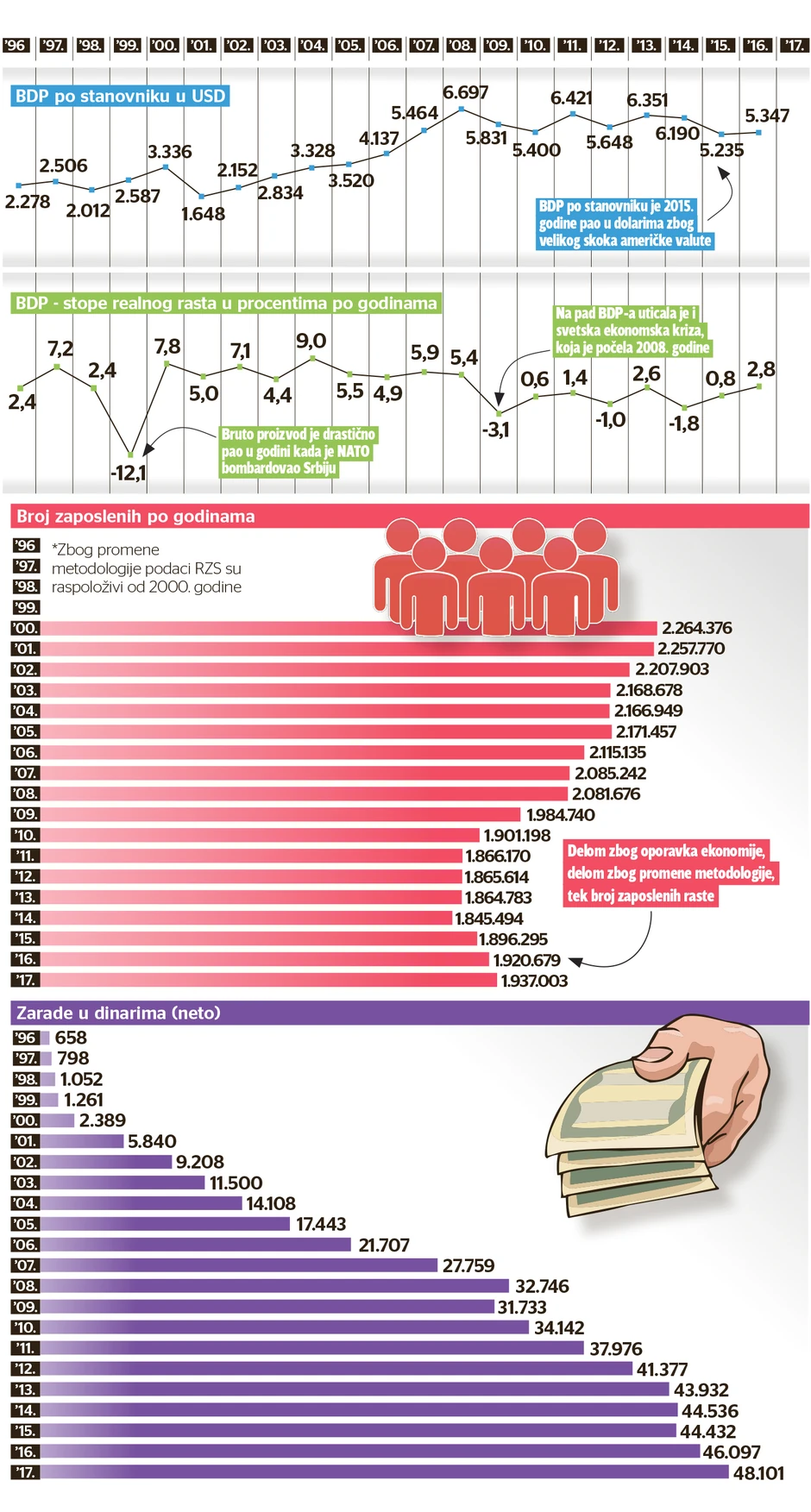 A Srbija je za to vreme doživela da je hvale kao „faktor mira i stabilnosti na Balkanu“, da je samo dve-tri godine kasnije bombarduje najjača vojna sila u istoriji čovečanstva, prošla je obaranje režima koji nije priznao izborni poraz, izručenje Hagu neprikosnovenog gazde života i smrti devedesetih, porađanje i prohodavanje demokratije početkom dve hiljaditih, ubistvo premijera, odvajanje od Crne Gore, proglašenje nezavisnosti Kosova, svetsku ekonomsku krizu, koja je rezultirala padom zaposlenosti, bruto proizvoda i plata, vlade socijalista, DOS-a, DSS, demokrata i naprednjaka, pa fiskalnu konsolidaciju i naznake početka oporavka... Petooktobarskim promenama Srbija je zacrtala svoj put ka Evropskoj uniji, na kom se i dalje nalazi.