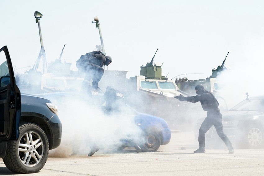 Takođe, na licu mesta se mogao videti helikopterski desant sa helikopterima Mi-8 i Mi-17, koji sa timovima vrše desantiranje.
