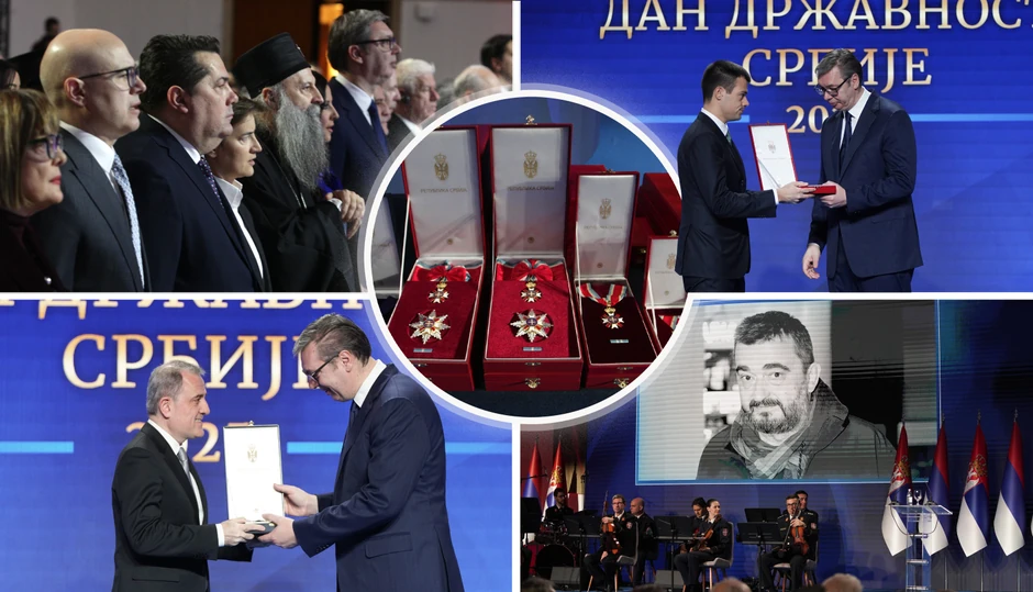 Predsednik Republike Srbije Aleksandar Vučić uručio odlikovanja zaslužnim pojedincima i institucijama povodom Sretenja - Dana državnosti Srbije. Posthumno su odlikovani reditelj Milorad Milinković i biznismen i filantrop Miodrag Kostić, kao i policajac Nikola Krsmanović koga je letos ubio albanski terorista Faton Hajrizi.