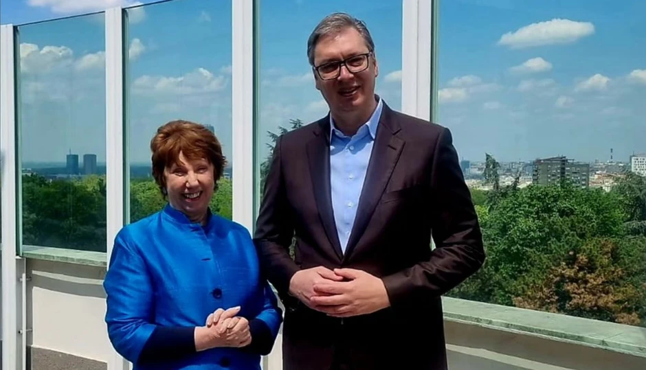 Predsednik Srbije Aleksandar Vučić sastao se danas sa nekadašnjom visokom predstavnicom Evropske unije za spoljnu politiku i bezbednost Ketrin Ešton i naveo da je sa njom razgovarao o budućnosti Srbije i njenom mestu u svetu.