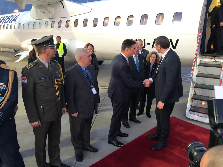 Predsednika Srbije na atinskom aerodromu dočekao je zamenik predsednika grčke vlade Panajotis Pikramenos, uz crveni tepih i postrojenu gardu.