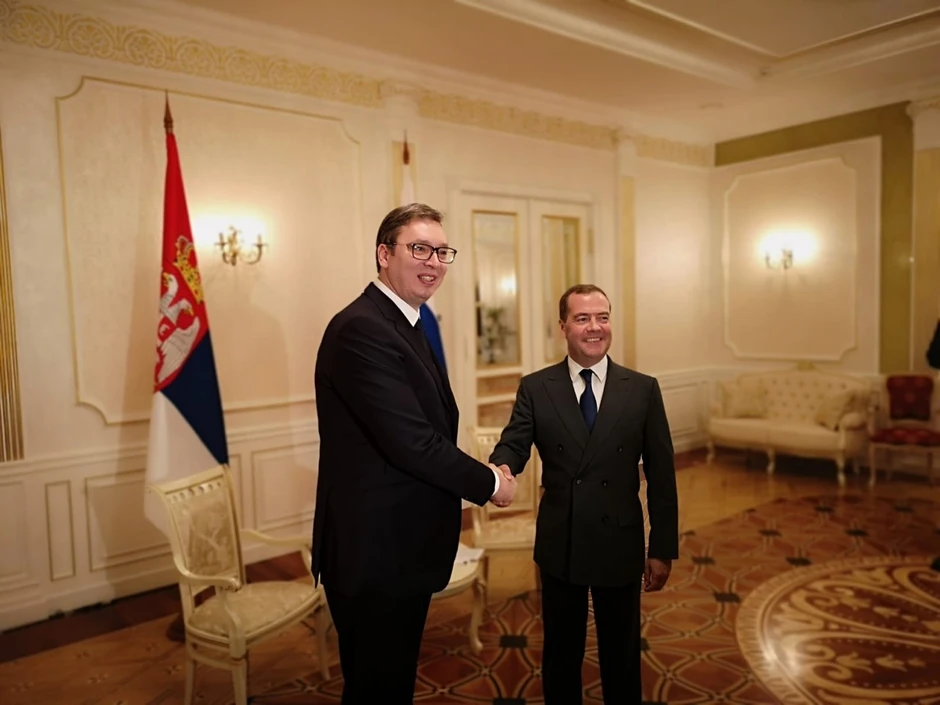 Medvedev je rekao da će Rusija podržavati Srbiju i da će biti uz našu zemlju, i da međunarodni poredak ne može da se menja i ruši na način kao do sada, te da će Rusija i u budućnosti igrati veoma značajnu ulogu u zaštiti teritorijalnog integriteta i celovitosti Srbije, istakao je Vučić.
