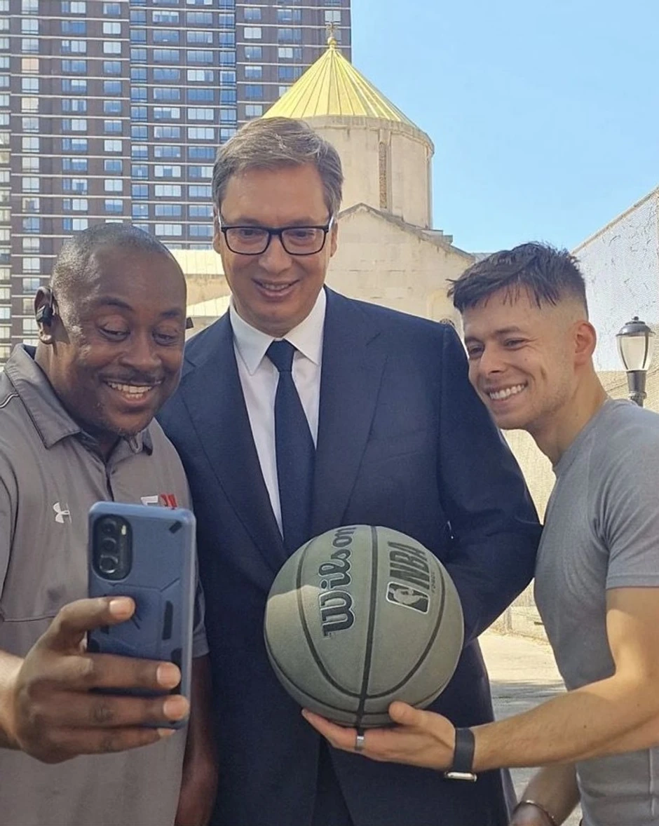 "U brzoj šetnji do zgrade UN naučio sam nove stvari o individualnom treningu za košarkaše. Neverovatna je njihova ljubaznost, iako im je trening prekinuo neki stranac", napisao je Vučić na Instagram profilu "Budućnost Srbije".