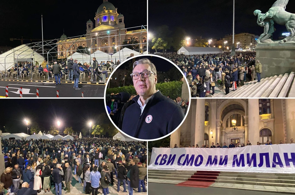 - I zato vam hvala, hvala svima koji ste došli večeras zbog Milana i zbog najveće vrednosti, a to je sloboda. Mi samo jednu stvar moramo i te kako da čuvamo. Neko mora da pokaže odgovornost. Mi moramo da sačuvamo mir. Oni su nam pokazali koliko su neodgovorni. Oni su nam pokazali koliko puta do sada, na stotine, hiljade puta, da su u stanju ruše i uništavaju sve pred sobom, da nam uništavaju zgrade, da nam pale prostorije. I nekako sa sladostrašćem su to radili - rekao je predsednik Vučić.