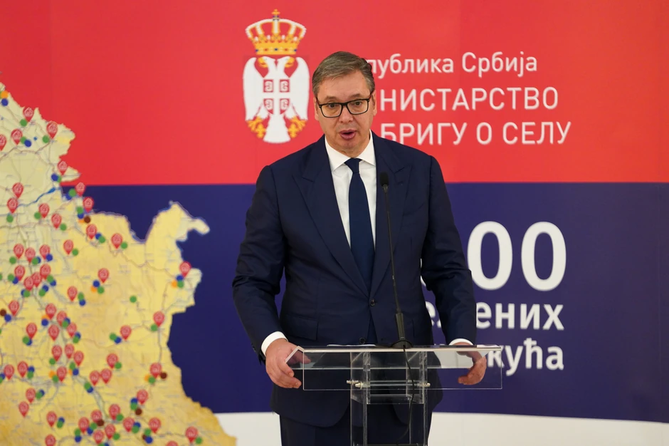 Predsednik Aleksandar Vučić se na svečanosti povodom potpisivanja 4.000 ugovora o dodeli sredstava za kupovinu seoske kuće izvinio što će morati da napusti taj skup zbog, kako je rekao, terorističkog akta ispred Skupštine Srbije.
