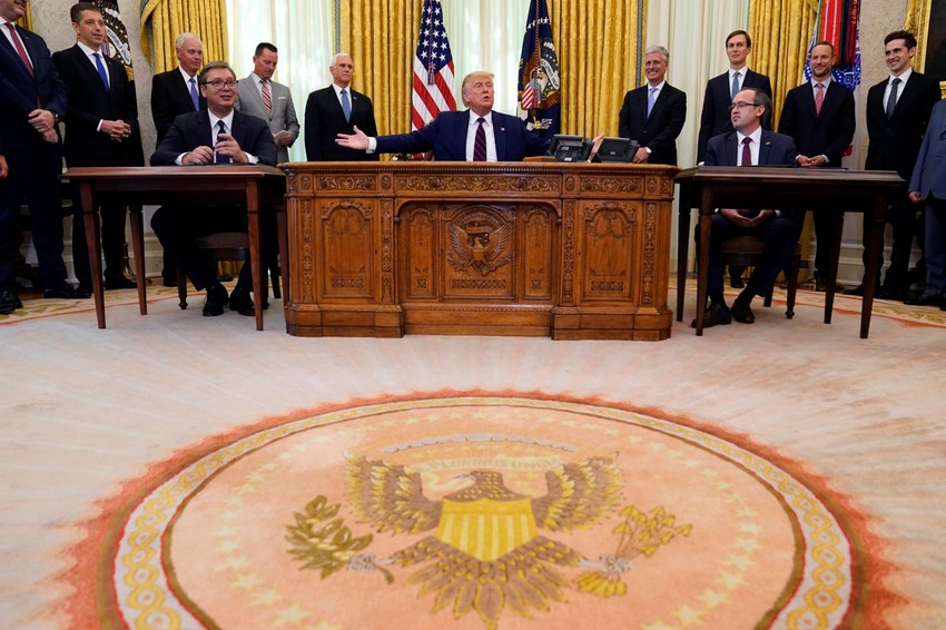 - Bio je srdačan susret, stavili su me u stolicu prekoputa Trampa. Svi su bili tu, i Pens i Džonson. Reč je uzeo i Ričard Grenel. Ja sam izrazio svoje viđenje odnosa Srbije i SAD. Ovo je značajan sporazum za odnose Srbije i SAD. To je velika čast za našu zemlju, za mene lično. Dobio sam ključeve od Bele kuće. Ovo je značajan sporazum i mi nemamo čega da se stidmo, već da se ponosimo, SAD je priznala Kosovo, to je svima poznato - rekao je Vučić.