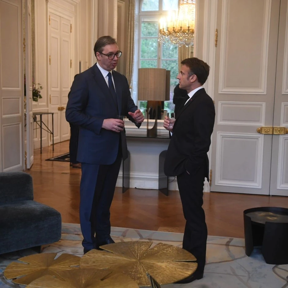 - Ponosan sam što sam večeras u Jelisejskoj palati imao priliku da sa predsednikom Emanuelom Makronom razgovaram o svim važnim pitanjima od geopolitičkih, do bilateralnih i onih strateški najbitnijih za Srbiju i naš narod - napisao je Vučić na Instagram nalogu "buducnostsrbijeav".