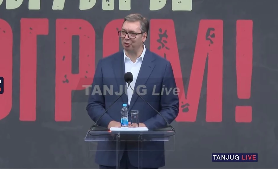 - Pred celim svetom, u UN smo se suprotstavili celom svetu i rekli: "Dosta je bilo pritiska", i digli smo glas u ime svih slobodarskih naroda na svetu. I pokazali smo da jedna mala država može da ih pobedi. Zato što ljudi hoće da menjaju svet, neće da budu više sluge, a mi Srbi nikada nismo hteli nikome da služimo. Mi danas znamo da nema spasa ako služite drugima, služimo svom narodu i svojoj zemlji i nikada se to više neće promeniti u našoj Srbiji - rekao je Vučić.
