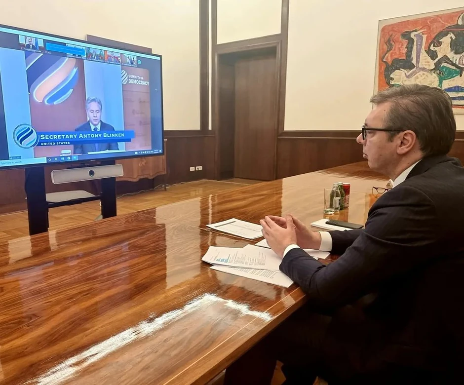 Predsjednik Srbije Aleksandar Vučić, koji na poziv predsednika SAD DŽozefa Bajdena učestvuje na onlajn Samitu za demokratiju, rekao je da je Srbija u potpunosti posvećena evropskim vrednostima, demokratskim principima i vladavini prava.