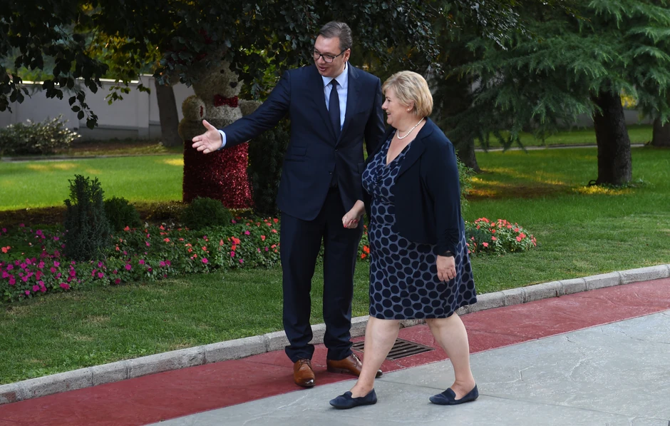 Predsednik Srbije Aleksandar Vučić priredio je večeras radnu večeru za premijerku Norveške Ernu Solberg sa kojom je razgovarao o bilateralnim odnosima, ekonomskoj saradnji, evropskom putu Srbije i situaciji u regionu.