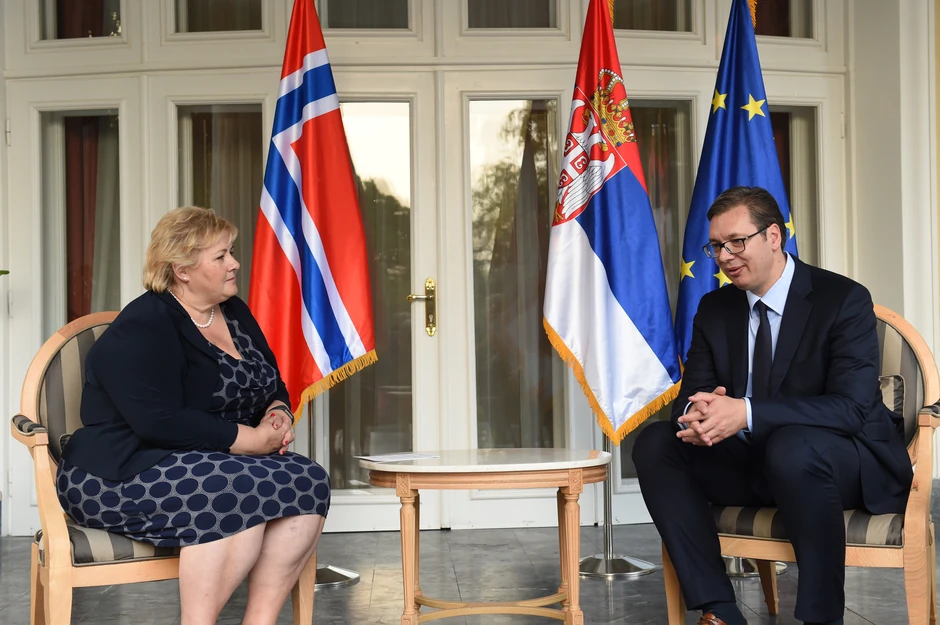 "Imajući u vidu dobre političke odnose, nadamo se da će se u narednom periodu intenzivirati privredna saradnja, kao i da će biti realizovane nove Norveške investicije u Srbiji" , istakao je predsednik Vučić.