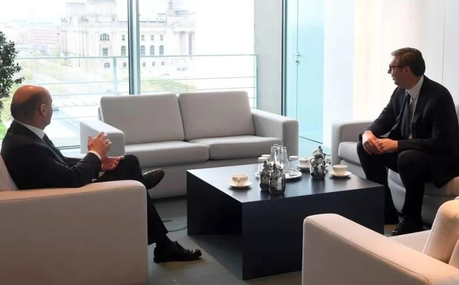 Predsednik Srbije Aleksandar Vučić sastao se danas posle podne u Berlinu sa nemačkim kancelarom Olafom Šolcom.