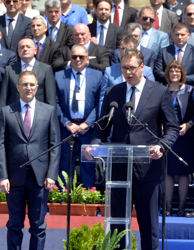 Vučić je prethodno na centralnoj manifestacija odao priznanje policiji koja štiti slobodu, spokoj, mir i bezbednost, zakon i gradjane bez obzira na pol, versku i drugu pripadnost, kao i našu decu i budućnost.