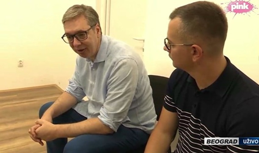 Vučić se sastao u tom objektu sa mladim članovim SNS koji su mu tom prilikom pružili podršku.