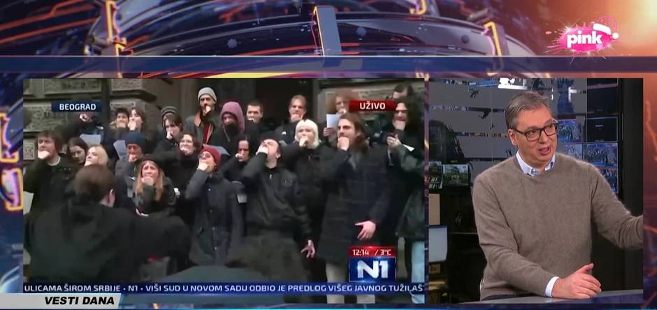 Na pitanje da prokomentarišse to nedavni performans studenata Elektrotehničkog fakulteta u Beogradu u kojem su nerazgovetno vikali sa pesnicom ispod usta, Vučić je gostujući na Pinku rekao da ne treba biti tako strog prema toj deci koja su htela da iskažu svoj bes.