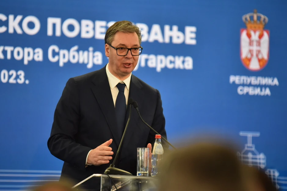 - Poštovani, predsedniče Alijev, uvaženi predsedniče Radev, ja danas ne mogu da govorim. Mi imamo glupa pravila koja smo usvojili u našoj zemlji da kada nešto uradite za svoju zemlju onda mesec dana pred izbore ne smete da se pohvalite time što ste uradili za svoju zemlju - kaže Aleksandar Vučić, predsednik Srbije na obeležavanju početka rada gasnog interkonektora Srbija-Bugarska.