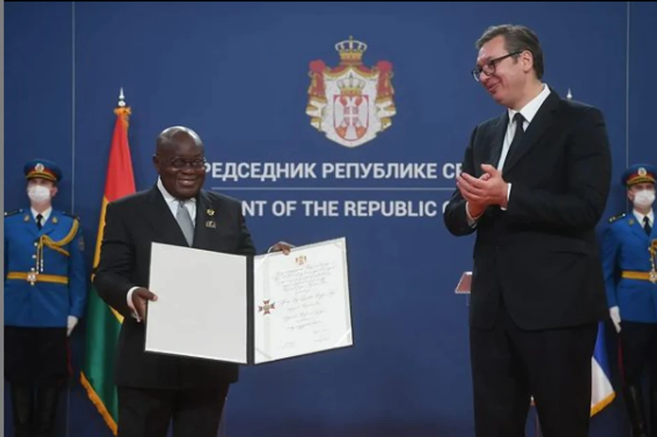 Predsednik Gane odlikovan je za naročite zasluge u razvijanju i učvršćivanju saradnje i prijateljskih odnosa između Srbije i Gane.