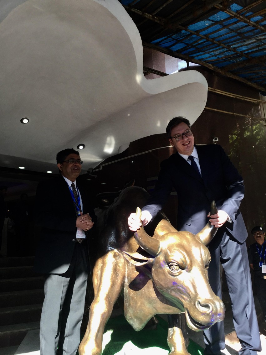 Vučić je tokom boravka u Indiji u više navrata ukazivao koliki je značaj za Srbiju što je on kao premijer dobio priliku da otvori Mumbajsku berzu jer su, kako je isticao, berzu otvarali predstavnici velikih zemalja sa daleko značajnijom privrednom razmenom sa Indijom.