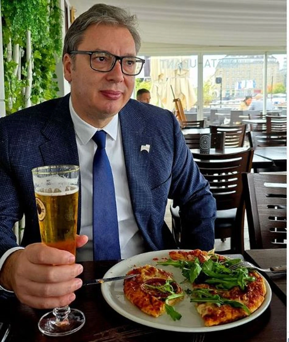 - Čekajući bilateralu sa nemačkim kancelarom. Pica je onako, a pivo je top! - napisao je na svom instagram profilu Vučić.