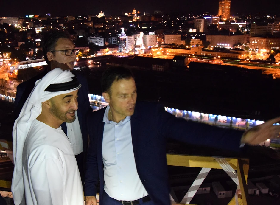Oni su sa gostom iz Emirata obišli i gradilište "Beograda na vodi", gde su se sa 18. sprata uverili u tok radova.