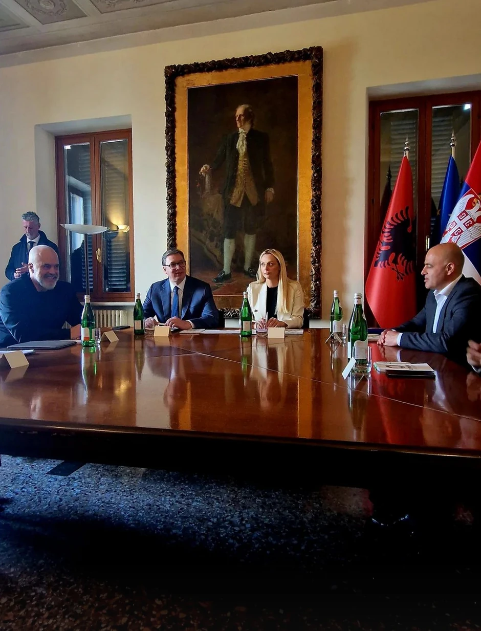 U gradskoj skupštini grada Bardolini počeo je sastanak predsednika Srbije Aleksandra Vučića sa predsednikom Vlade Albanije Edijem Ramom i predsednikom Vlade Severne Makedonije Dimitrom Kovačevskim.