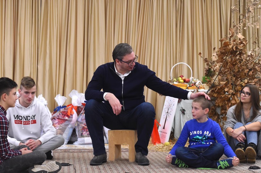 Predsednik Srbije Aleksandar Vučić družio se danas, povodom Badnjeg dana, sa decom srpske nacionalnosti iz Hrvatske.
