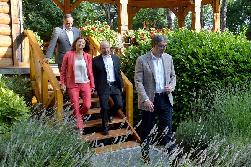 Predsednik Srbije Aleksandar Vučić sastao se jutros sa posrednicima Evropskog parlamenta u međustranačkom dijalogu Tanjom Fajon, Vladimirom Bilčikom i Knutom Flekenštajnom u vili "Mir".