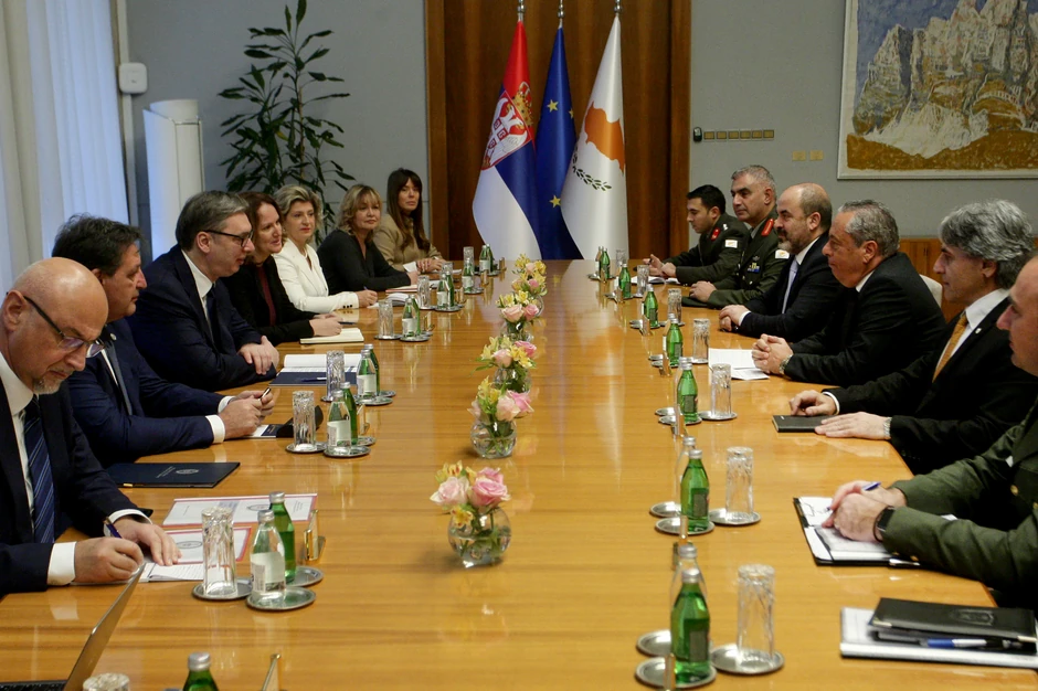 Predsednik Srbije Aleksandar Vučić sastao se sa ministrom odbrane Republike Kipar Vasilisom Palmasom i ocenio da je razgovor bio odličan i sadržajan, a tema je bila jačanje saradnje, posebno u oblasti odbrane i bezbednosti, za koju je istakao da je od ogromne važnosti za doprinos miru i stabilnosti u našem regionu.