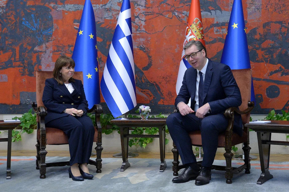 Onako kako Grčka podržava integritet Srbije, tako Srbija podržava integritet Grčke i na kopnu i na moru i na ostrvima, kaže predsednik Srbije Aleksandar Vučić nakon sastanka sa predsednicom Grčke Katerinom Sakelaropulu, koja boravi u zvaničnoj poseti Srbiji.