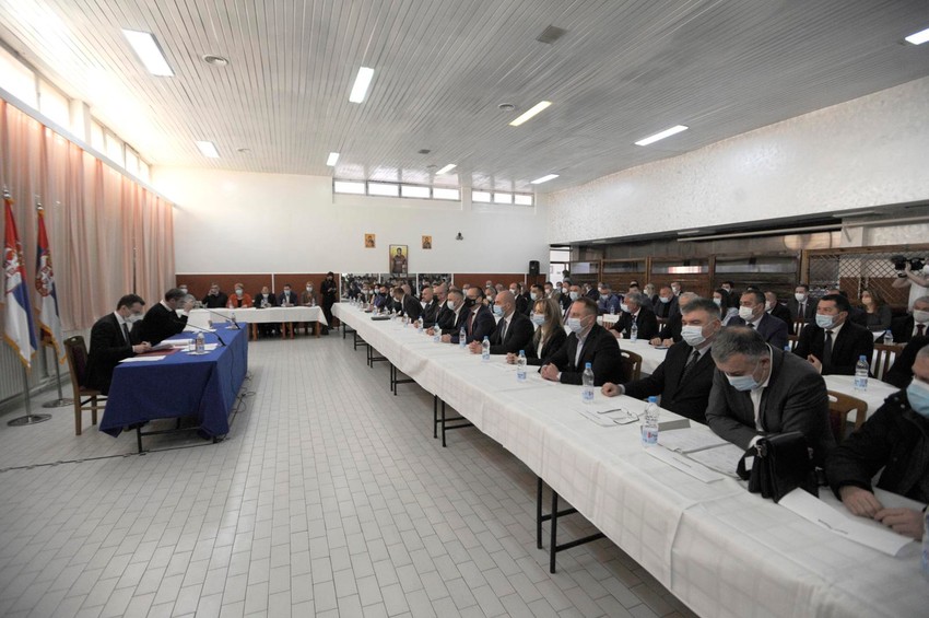 Zatim je usledio sastanak kojem pored direktora Kancelarije za KiM Petra Petkovića, predsednika i potpredsednika Srpske liste Gorana Rakića i Igora Simića, prisustvuju i predsednici privremenih organa u 10 opština sa većinskim srpskim stanovništvom na KiM, kao i predstavnici zdravstvenih ustanova na KiM.