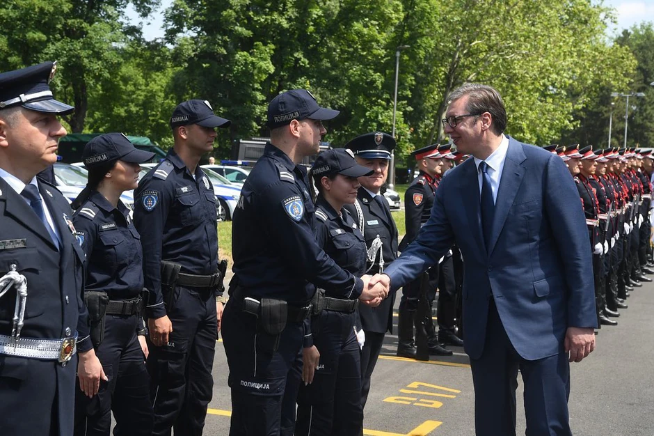 Predsednik Vučić se potom pozdravio sa pripadnicima policije i MUP koji su stajali u stroju.