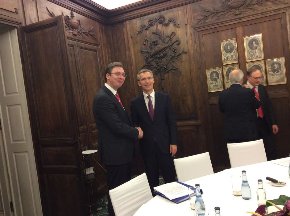 Predsednik Vlade Republike Srbije Aleksandar Vučić sastao se večeras u Minhenu sa generalnim sekretarom NATO Jensom Stoltenbergom sa kojim je razgovarao o prisustvu KFOR-a na Kosovu i Metohiji, kao i o saradnji kroz Partnerstvo za mir.