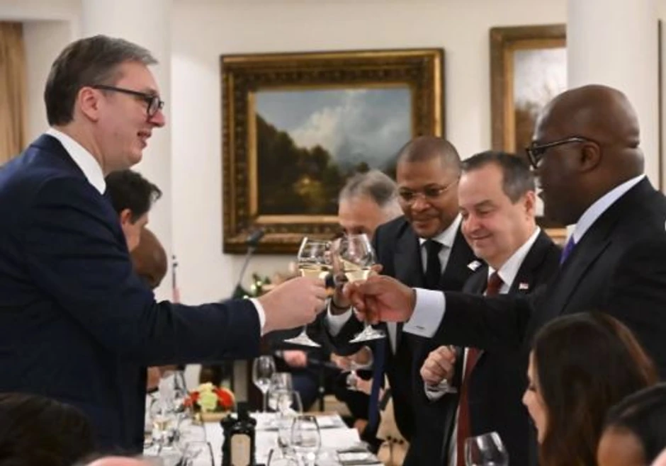 Predsednik Srbije Aleksandar Vučić ugostio je sa suprugom Tamarom na večeri predsednika Demokratske Republike Kongo Feliksa Antoana Čisekedija Čilombu sa suprugom Deniz Njakeru Čisekedi i delegacijom.