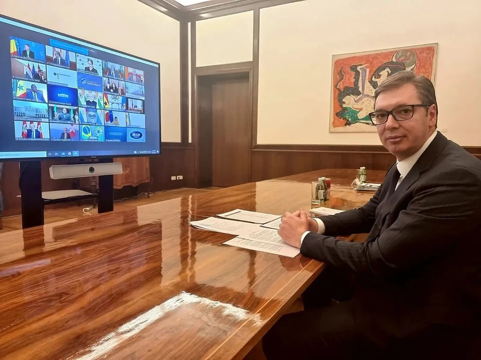 Predsednik Vučić učestvuje u Samitu putem video linka, a na instagram profilu "Budućnostsrbije" podelio je fotografije iz Predsedništva, na kojima se vidi kako preko video linka prati skup, na kojem, između ostalih, učestvuju novi nemački kancelar Olaf Šolc, premijer Luksemburga Gzavije Betel...
