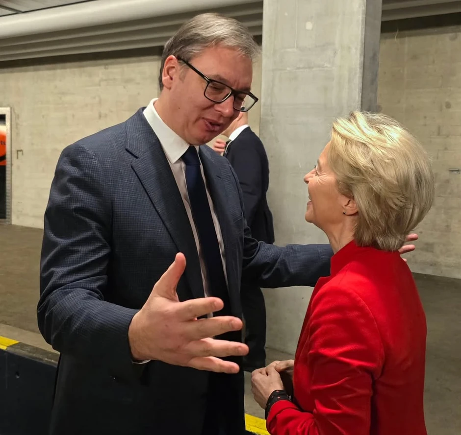 - Uvek je lepo sresti iskrenog prijatelja Srbije, kao što je Ursula fon der Lajen. Kratka razmena mišljenja o aktuelnoj situaciji u svetu i regionu, a fokus na ubrzanje evropskog puta Srbije - poručio je Vučić.