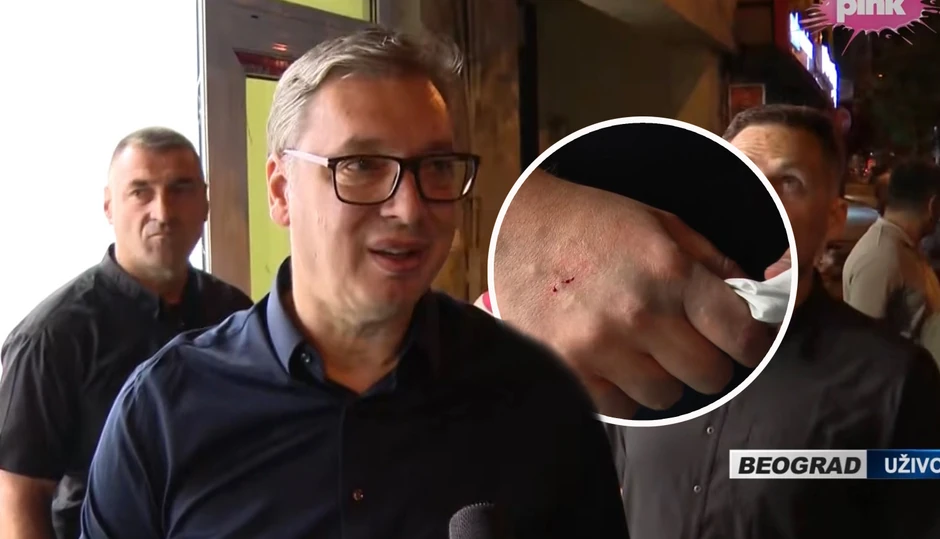 Prostorije stranke prethodno su demolirane, a Vučić se posekao na delove razbijenog stakla.