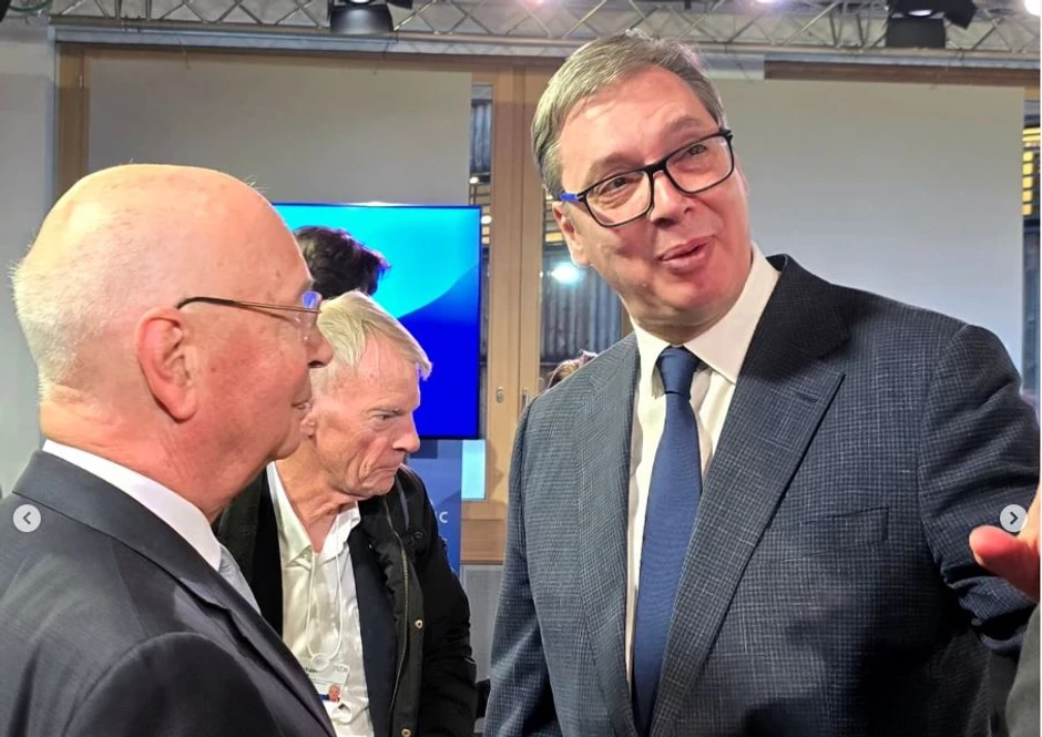 "Srdačan kratak susret sa Klausom Švabom i brza razmena mišljenja o ključnim temama WEF25 koje već uveliko oblikuju novu etapu u geopolitičkim odnosima. Srbija deli konstruktivni optimizam uvaženog domaćina, spremna da zauzme svoje mesto u najvažnijim političkim i ekonomskim krugovima, čiji brojni predstavnici su se okupili i na ovogodišnjem svetskom ekonomskom forumu", naveo je Vučić na instagram nalogu ''budućnostsrbijeav''.