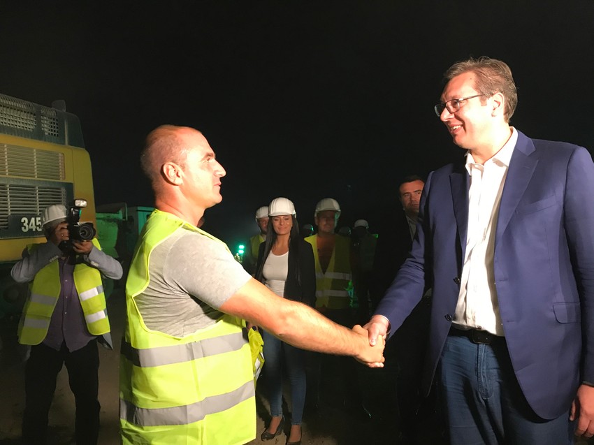 - Ovde je angažovano 13 bagera, tri buldožera i 30 kamiona. Želim da čestitam svim našim radnicima i izvođaču firmi "Aktor". Mislim da smo svi ovde večeras jako ponosni jer na auto put čekamo decenijama - rekao je Vučić,.