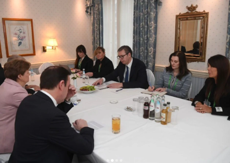 Predsednik Srbije Aleksandar Vučić sastao se danas u Minhenu sa delegacijom američkih senatora na čelu sa senatorkom Džin Šahin.