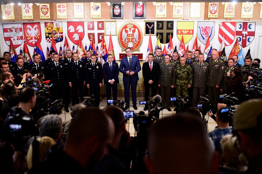 Predsednik Srbije je ovom prilikom rekao da su "naše jedinice sve opremljenije i obučenije, a budžet za odbranu nikad veći", kao i da se na sastanku bilo reči tri važne stvari: bezbednosnoj situaciji, opremljenosti pripadnika bezbednosti, kao i o njihovim platama koje će i nadalje biti povećavane.