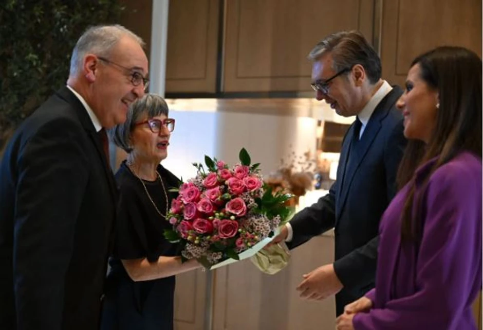 Predsednik Srbije Aleksandar Vučić, sa suprugom Tamarom, ugostio je na večeri predsednika Švajcarske Konfederacije Gi Parmelana.