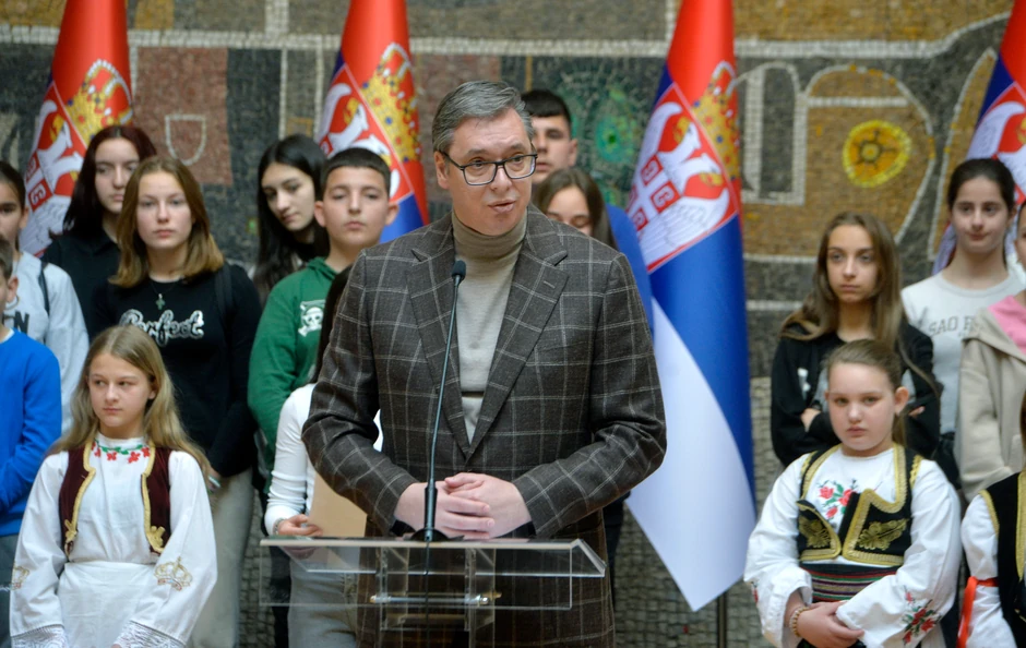 - Hvala što ste danas sa nama u Beogradu, danas na dvadesetogodišnjicu strašnog pogroma srpskog stanovništva u južnoj srpskoj pokrajini koji istom žestinom traje i danas 20 godina kasnije. Čak ni metode ne menjaju mnogo uz isti sladostrasnu podršku onih koji su ih podržavali bombama 1999. godine samo malo u uvijenijoj formi - rekao je predsednik Aleksandar Vučić koji je ugostio u "Palati Srbija" učenike osnovnih škola sa Kosova i Metohije.