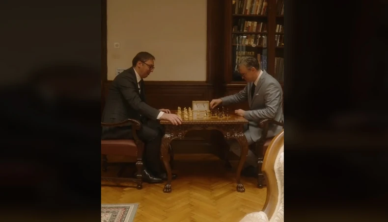 Predsednik Srbije Aleksandar Vučić objavio je novi šaljivi snimak na TikToku. On je na njemu pokazao kako je ugostio svog "dvojnika" u Predsedništvu, odnosno mladića koji se na društvenim mrežama predstavlja pod nadimkom dnevna.doza.predsednika.