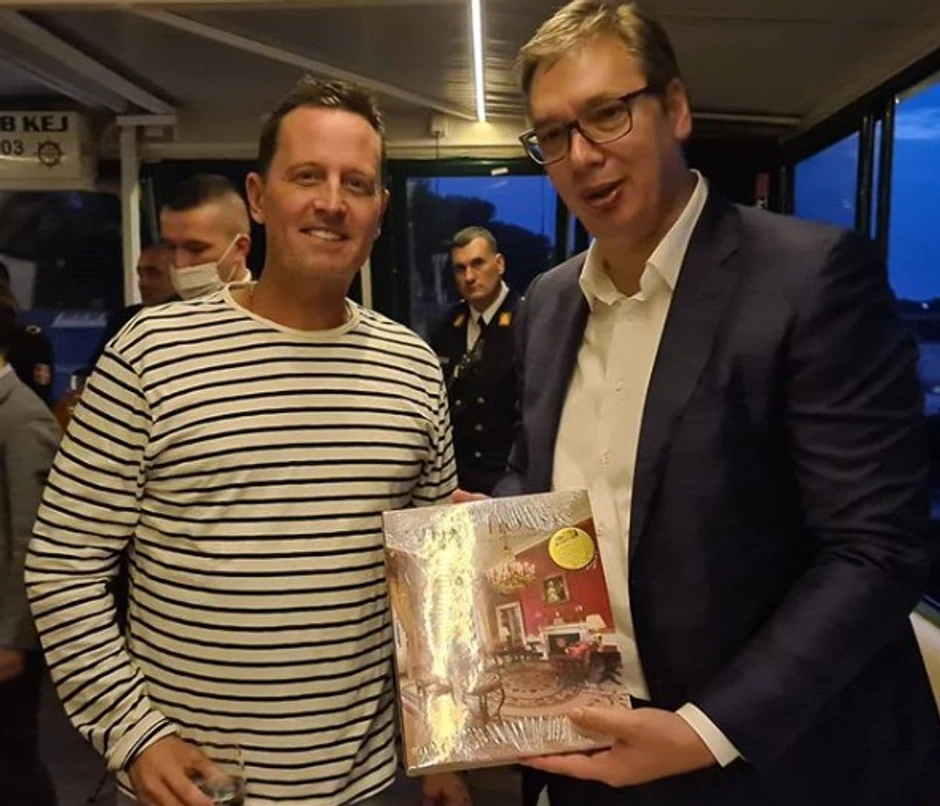 - Hvala Ričardu Grenelu na posvećenosti i dobrom poslu koji obavlja za ceo region. I hvala na divnom poklonu! - napisao je Vučić na Instagramu uz sliku sa Grenelom i poklonom.