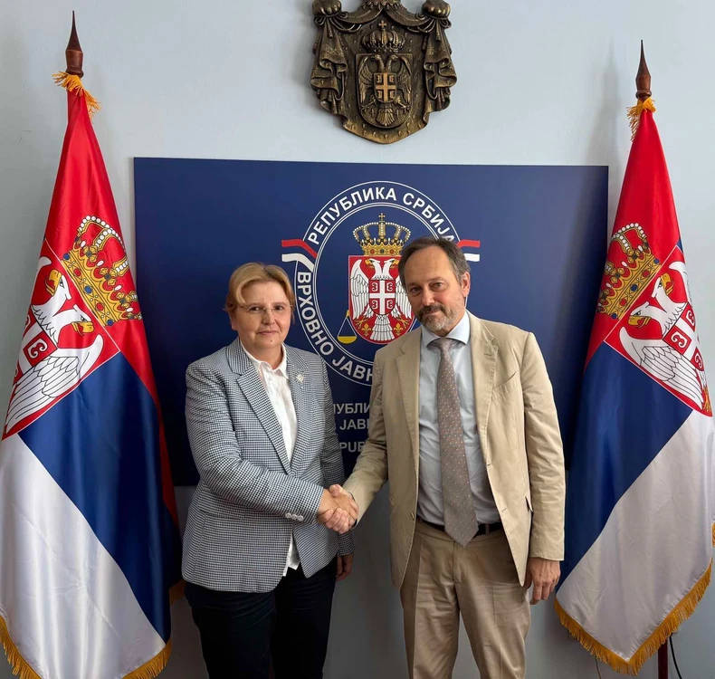 Vrhovni javni tužilac Zagorka Dolovac je danas održala sastanak sa ambasadorom Delegacije Evropske Unije u Republici Srbiji, gospodinom Emanuelom Žiofreom, povodom njegovog predstojećeg odlaska sa ove dužnosti.
