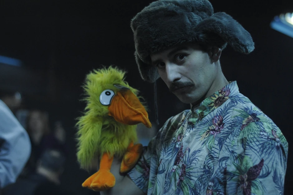 Ognjen Maksimović, koji je promenio ime u Ljubiša Beli Preletačević, na glavi nosi igračku - žutu pticu, koja se inače našla u jednom od videa.