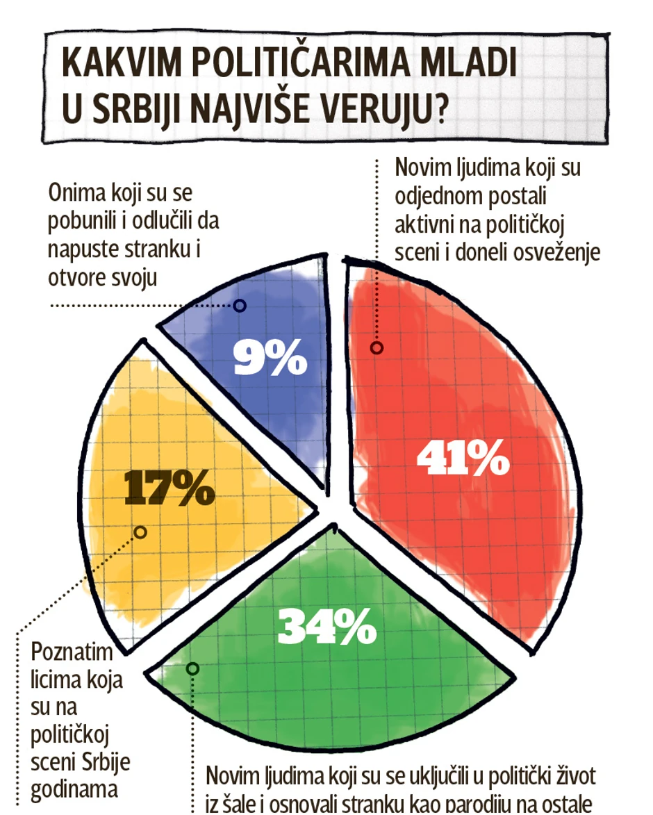"Blic" je pred izbore uradio anketu među mladima s pitanjem: "Da li će glasati na izborima" i ako ne, zašto? Svi kojima je bilo postavljeno pitanje odgovorili su odrično, dok su kao razloge uglavnom navodili da "nemaju za koga" i da "nikome ne veruju".