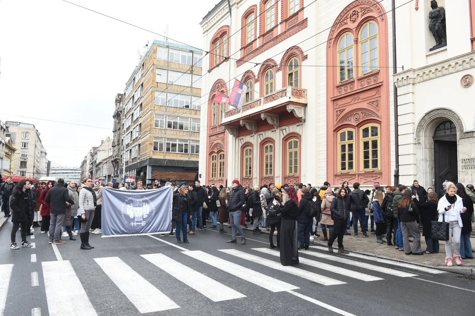 U Beogradu je na nekoliko mesta blokiran saobraćaj: U Takovskoj ulici , zatim ispred Skupštine Srbije na Trgu Nikole Pašića, kod zgrade Rektorata na Studentskom trgu...